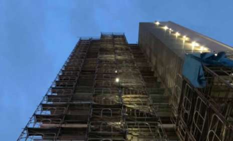 外壁の足場を組み立ててから、