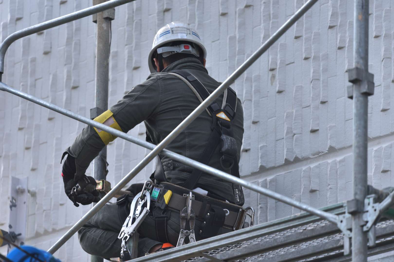 足場上での転倒や墜落は、建設現場で最も多い労働災害の一つです。隙間があることで、作業員の靴底が引っかかったり、体の重心を崩したりして転落するリスクが高まります。また、工具や材料が隙間から落下すれば、下で作業している労働者を直撃する危険もあります。厚生労働省が示す「足場の安全対策指針」では、隙間を可能な限り小さくし、巾木や手すり、シートなどの防護設備を設けることが推奨されています。さらに、作業中は安全帯(墜落制止用器具)の確実な使用が義務付けられています。