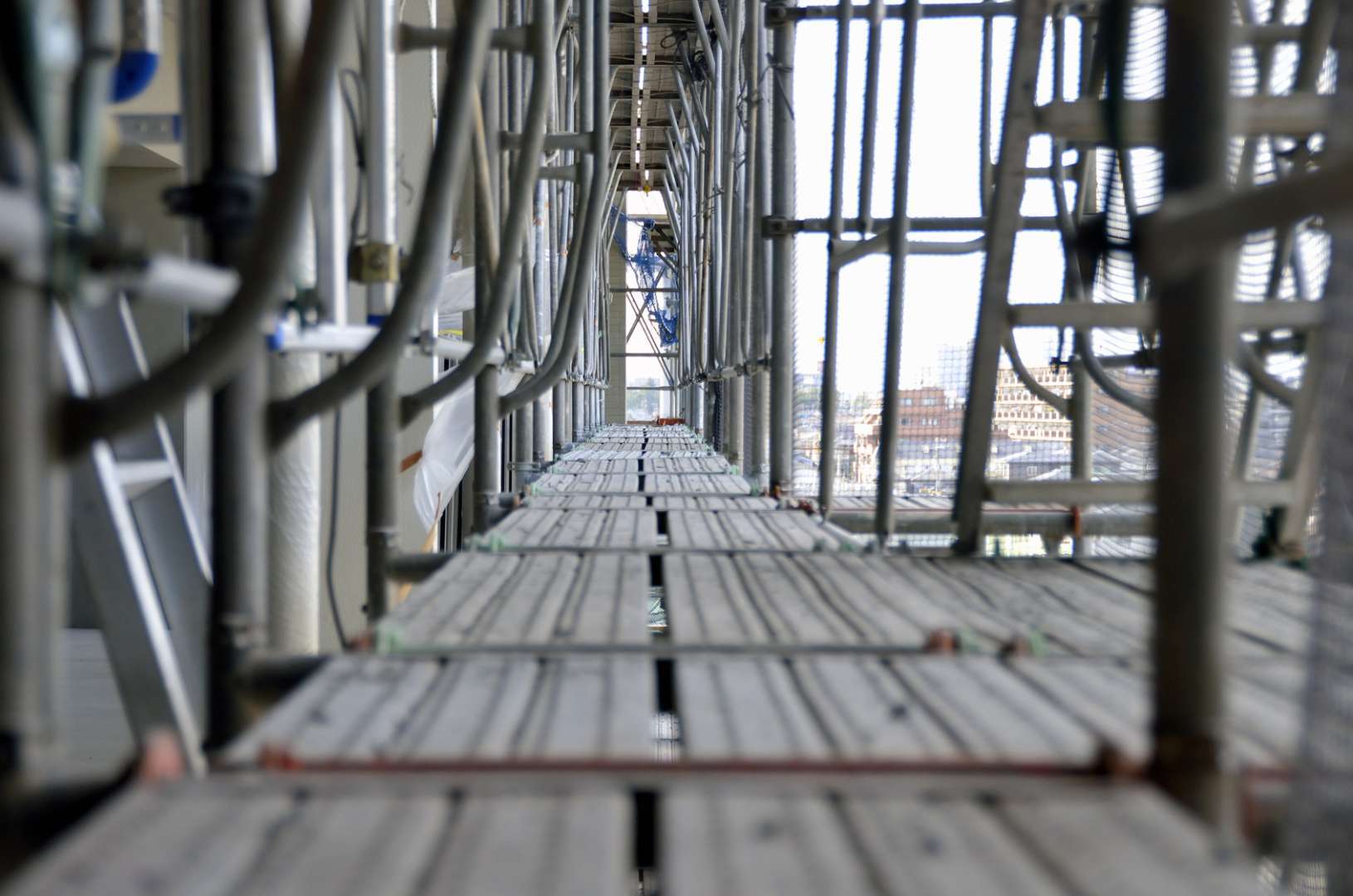 隙間に関する点検では、足場板の損傷や腐食、固定金具の緩みなどが見落とされやすい部分です。特に、仮設足場は設置後の環境変化(風雨・温度変化・荷重変動)によって部材がわずかにずれることがあり、当初の基準値(3cm以内)を超える隙間が生じる場合があります。そのため、定期的な安全点検の実施が不可欠です。点検では、建地の傾き、クランプの緊結状態、巾木や手すりの有無を確認し、異常があれば速やかに補修や再固定を行う必要があります。現場責任者や足場の組立て等作業主任者は、これらの点検を作業開始前・日常点検・定期点検の3段階で実施することが推奨されています。